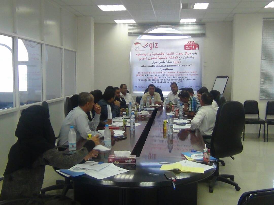 اقام اليوم مركز بحوث التنمية الاقتصادية والاجتماعية ESDR بالتعاون مع الوكالة الالمانية للتعاون الدولي GIZ حلقة نقاشية في اطار مشروع التحكيم التجاري والوساطة لحل المنازعات التجارية باليمن، حضرها ممثلي البيوت التجارية ورجال الاعمال ورجال القانون من القضاة والمحاميين والاكاديميين بالغرفة التجارية والصناعية بالحديدة، هدفت الى معرفة جدوى التحكيم التجاري كآلية لحل النزاعات التجارية من وجهة نظر رجال القانون ورجال الاعمال، ومناقشة التحديات والمعوقات التي تقف امامه، واوجه القصور في قانون التحكيم التجاري اليمني.
