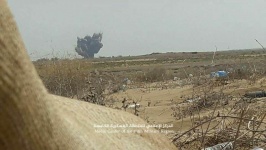 مقاتلات التحالف تدمر مخزن أسلحة وآليات عسكرية للحوثيين غرب تعز