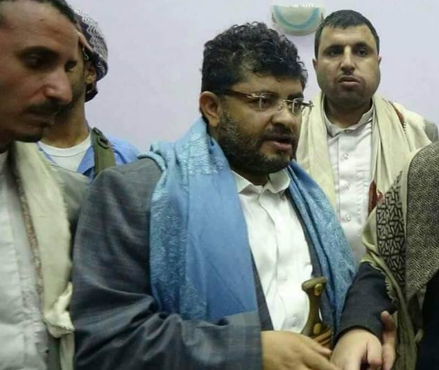 تداول نشطاء بمواقع التواصل الإجتماعي، صورة لرئيس ما تسمى اللجنة الثورية العليا، محمد علي الحوثي، يظهر فيها بلحية رثة ويديه تبدوان مكبلتين.
