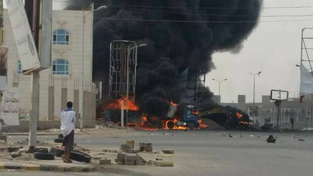 وأوضحت ان عدد من المدنيين قتلوا في القصف، اضافة إلى اشتعال النيران في عدد من المحلات التجارية في عمارة الراعي.