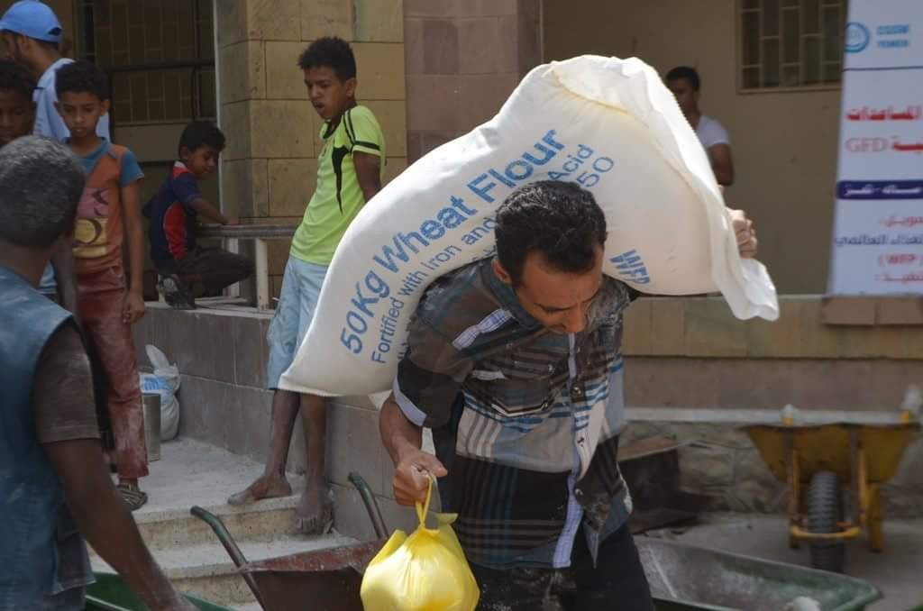 بالشراكة مع برنامج الغذاء العالمي بدء توزيع المساعدات الغذائية الشهرية في مديرية صالة