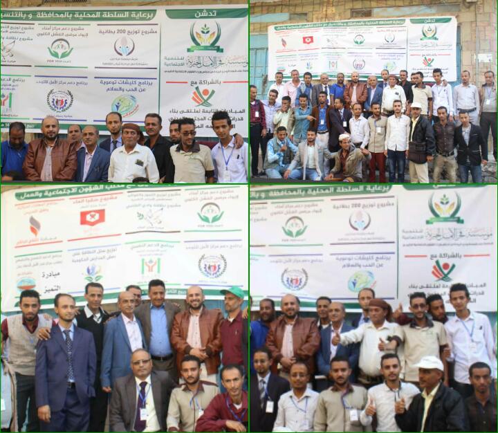 برعاية السلطة المحلية بالمحافظة وبالتنسيق مع مكتب الشؤون الاجتماعية والعمل . دشنت مؤسسة فجر الأمل الخيرية للتنمية الإجتماعية اليوم الأحد 16/ 12/ 2018م عشرة مشاريع خيرية وتنموية . بالشراكة مع المبادرات المنبثقه من ملتقى بناء قدرات منظمات المجتمع المدني التي تقيمة المؤسسة . حيث تنوعت المشاريع التي دشنت في عدد من المجالات منها مشروع توزيع 200 بطانية نفذته مبادرة بصمة مبادرون بالشراكة مع مبادرة شباب القاهرة ومشروع سقياء الماء لحارة الدار بئر باشا لمدة سته اشهر لمبادرة رواد الإبداع ومشروع توزيع التمور والفواكه على مستشفى الامراض النفسية نفذته مبادرة صناع السلام. ومشروع توزيع المساعدات النقدية والمواد الغذائية على مركز إيواء مرضى الفشل الكلوي ستنفذه مبادرة لأجلك. ومشروع توزيع المساعدات والمواد الغذائية لمركز الإعاقة المزدوجه. والذي ستنفذه مبادرة إنطلاقه بلا حدود ومشروع المساعدات والدعم النفسي لمركز التوحد ستنفذه مبادرة رحماء بينهم. ومشروع توزيع سلل النظافه على بعض المدارس الحكومية لمبادرة الريادة. وبرنامج المهارات الحياتية للمتطوعات في مدرسة الحجري تتفذه _مبادرة نلتقي لنرتقي. ومشروع الدعم النفسي لأحفاد بلال تنفذه _مبادرة التميز بالشراكة مع جمعية المستقبل. حملة الكليشات التوعوية على السلام والتعايش _مبادرة سهام الخير. وخلال التدشين اشاد الاستاذ عبده علي مدير مكتب الشؤون الاجتماعية والعمل بالمحافظةبجهود مؤسسة فجر الامل على هذا العمل الريادي شاكرآ المبادرات على تفاعلهم وتوحد أعمالهم التي نتج عنها هذا العمل المتميز والهادف إلى خدمة الإنسان وتنمية روح العمل الانساني. من جهته الاستاذ بليغ التميمي رئيس المؤسسة تقدم بالشكر الجزيل للمشاركين في الملتقى مباركآ لهم جهودهم المتميزة وتفاعلهم الملحوظ والذي تمخضت منه هذه المبادرات التي عملت بروح الفريق الواحد لتتوج بهذه المشاريع داعيآ إلى شراكة حقيقية لما من شأنه الرقي والتميز بالعمل الخيري والإغاثي والتنموي. حضر التدشين العديد من المبادرات ومنظمات المجتمع المدني وعلى رأسهم المهندس سعيد العسيلي مدير المشاريع بمؤسسة شراكة . *فجر الأمل.......تطوع #وتنمية*