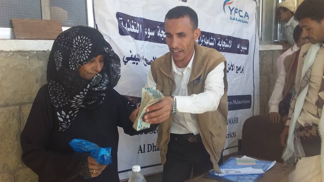 وفي تصريح لعصو لجنة الصرف محمد قايد المهاجري قال أن المشروع الذى أستهدف مديرية الحشاء مكون من ثلاث مراحل مرحلة الحوالات النقدية لطارئة مرحلة محو الامية و مرحلة النقد مقابل العمل