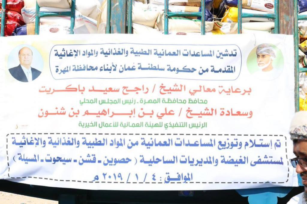 ومنذُ اندلاع الحرب في اليمن ، قدمت سلطنة عمان حملات اغاثية وإنسانية كبيرة لليمن بشكل عام وللمهرة بشكل خاص كونها أحد المحافظات القريبة من حدودها الشرقية للبلاد.
