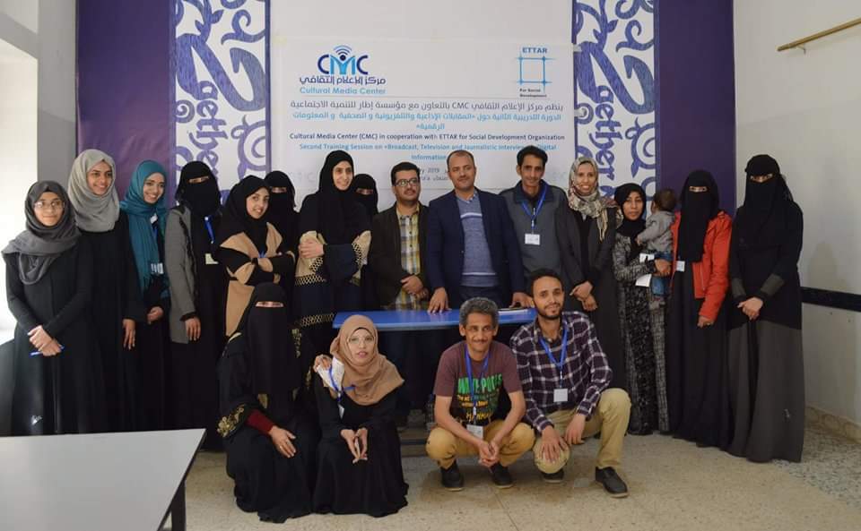 نفذ مركز الإعلام الثقافي CMC ومؤسسة إطار للتنمية الإجتماعية، بصنعاء دورة تدريبية في "المقابلات الصحفية والتلفزيونية والإذاعية وآمن المعلومات الرقمية"، على ثلاثة أيام 26_28 يناير الجاري، لـ15 متدربا ومتدربة يمثلون صحف وإذاعات يمنية مختلفة..