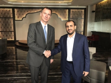 التقى وزير الخارجية البريطاني جيرمي هنت، اليوم الجمعة برئيس وفد الحوثيين التفاوضي، والناطق باسم الجماعة محمد عبد السلام في العاصمة العمانية مسقط. ورحب الوزير البريطاني، بالتقدم الحاصل في "المحادثات بشأن ميناء الحديدة"، لكنه شدد على ضرورة انسحاب الحوثيين منها. وأكد أن انسحاب قوات الحوثيين قريبا من الحديدة ضروري للحفاظ على الثقة باتفاق ستوكهولم ، وإتاحة فتح معابر إنسانية حيوية.