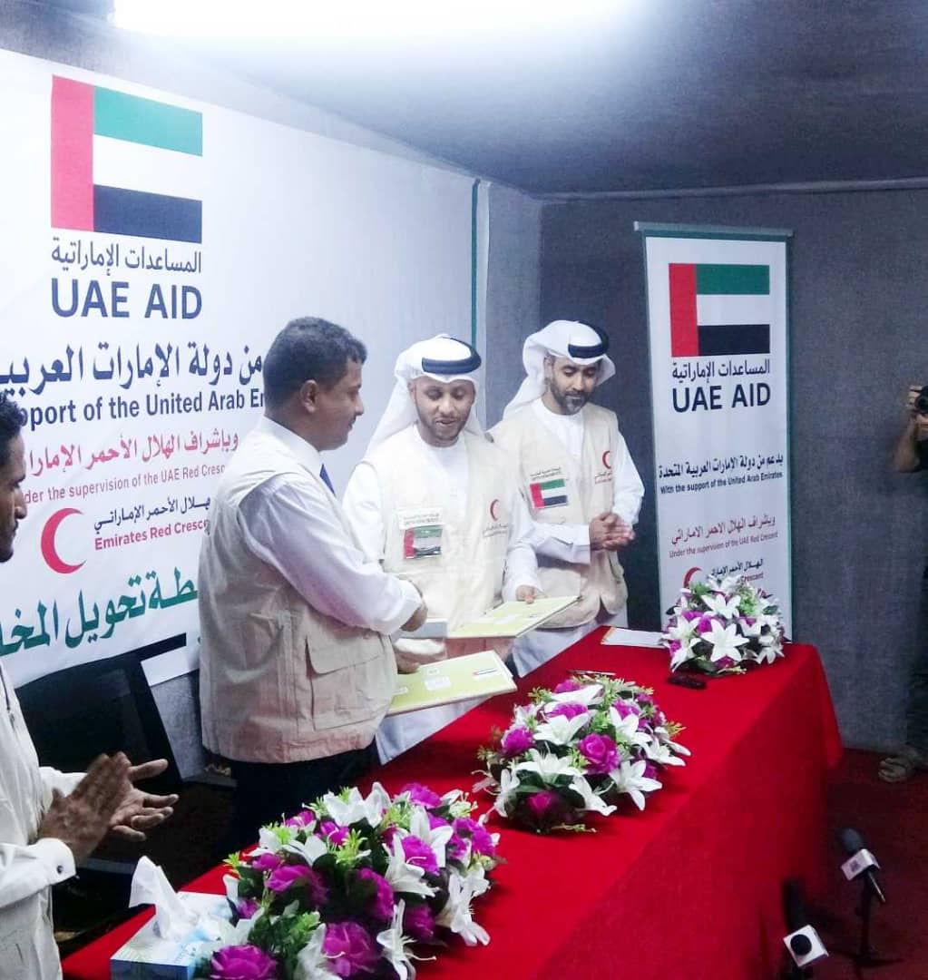 عقدت هيئة الهلال الأحمر الإماراتي مؤتمراً صحفياً حول إبرام إتفاقية مع شركة الفيصل للمقاولات إتفاقية لتوريد وتركيب وتشغيل محطة كهربائية لمديرية المخا بقدرة 20 ميجا وات . وقال مدير الشؤون الإنسانية في هيئة الهلال الأحمر الإماراتي محمد سالم الجنيبي أن التوقيع على هذه الإتفاقية جاء بناءً على توجيهات القيادة الإماراتية لتلبية المطالبات التي أطلقتها السلطة المحلية والمواطنين في المخا للقيادة الإماراتية بدعم قطاع الكهرباء وذلك بعد المعاناة من العجز الحاصل في محطة التوليد نتيجة لخروج بعض المولدات الكهربائية عن الخدمة . وأضاف الجنيبي أن الهلال الأحمر الإماراتي مستمر في دعم مثل هذه المشاريع الحيوية والتنموية سواءً في التعليم أو البيئة أو الكهرباء وجميع المشاريع المهمة التي تساعد الشعب اليمني في ظل الظروف الراهنة . وتحدث الأمين العام للمجلس المحلي بالمخا الآنسي قاسم زيد قائلاً : أن المحطة كانت تعاني من عجز كبير منذ وقت سابق في توليد الطاقة الكهربائية بسبب احتراق أحد المولدات وعدم تمكن المولد الآخر من تغطية العجز في الطاقة ، لذلك وجهنا مناشدة للهلال الأحمر الإماراتي واستجابوا لمناشدتنا واليوم يتم التوقيع على إتفاقية توريد وتركيب وتشغيل مولد لمحطة الكهرباء البخارية بقدرة 20 ميجا وات .