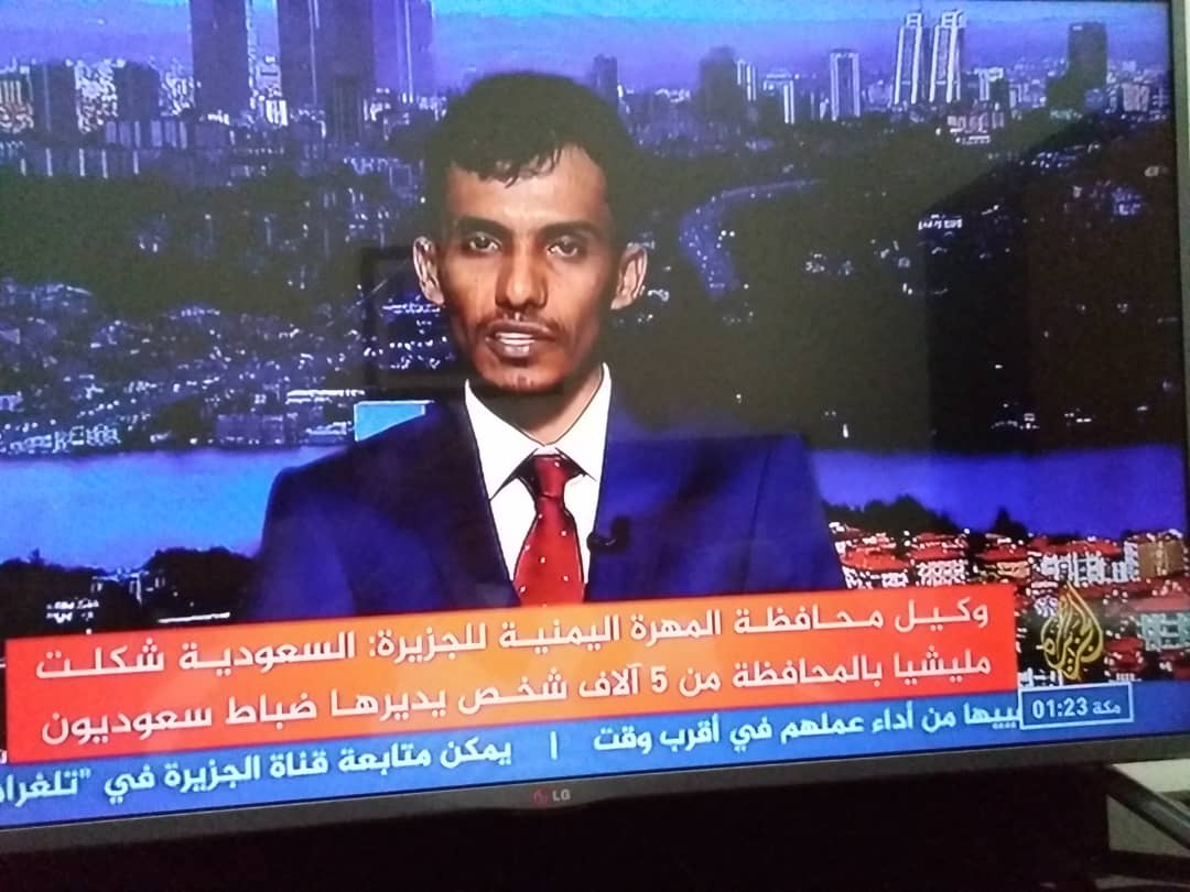 وقال حاولت السعودية تجنيد أشخاص من بعض القبائل في المهرة بعيدا عن الأجهزه الأمنية ولم تنجح وقامت بتشكيل مليشيات من خارج أبناء المحافظة لتمرير أجندتها، و لازالت الاستخبارات الإماراتية موجودة وتنفذ أجندتها عبر المحافظ، والسعودية تعمل في المهرة بعقلية الإمارات من خلال تشكيل المليشيات وإنشاء السجون السرية والممارسات الغير قانونية.