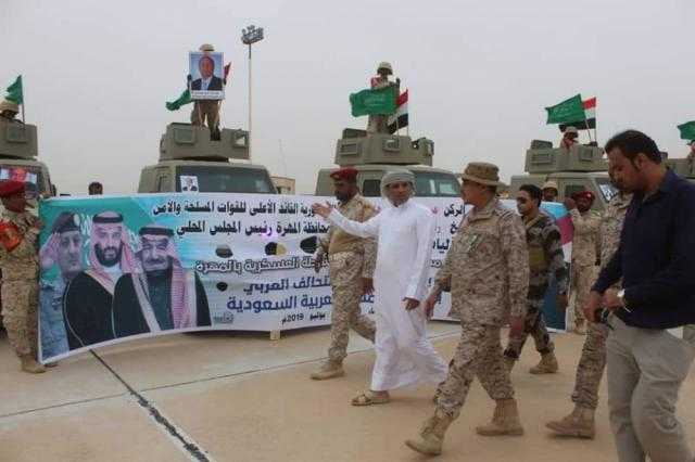 ودشن محافظ المحافظة راجح سعيد باكريت مساء اليوم وبحضور قائد قوات التحالف العربي المشترك بالمهرة العميد البحري الركن احمد تركي العصلاني والعقيد البحري الركن عبدالله محمد الشهراني عملية تسليم (18) آلية مصفحة لسرايا مكافحة الإرهاب بفرع الشرطة العسكرية م/المهرة .