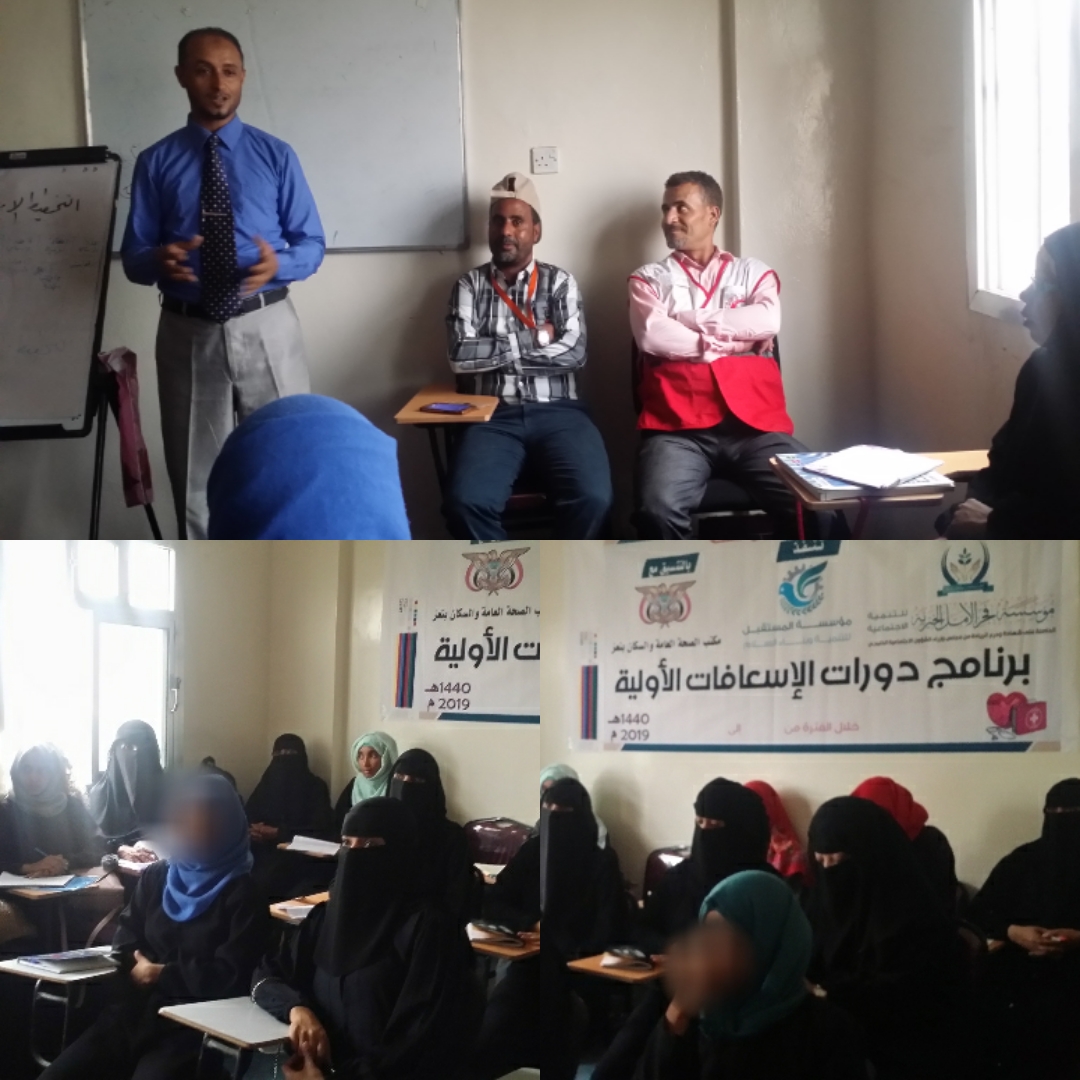 برعاية مؤسسة فجر الأمل الخيرية للتنمية الاجتماعية وبالتنسيق مع مكتب الصحة والإسكان بالمحافظ مؤسسة المستقبل للتنمية وبناء السلام اطلقت اليوم دورة الإسعافات الأولية ل 25 مشاركة هذه الدورة تأتي تحت شعار صحة من أجل الدمج والذي اوضح فيها الأستاذ عبده سعيد رئيس مؤسسة المستقبل أن الهدف من الدورة تنمية قدرات المشاركات صحياً من أجل التمكن من التعامل مع الحالات الطارئة وأن أجمل ما في هذه الدورة هو مشاركة أكثر من فئه الأمر الذي يدعوا إلى السرور وازالت الطبقيه بين أبناء المجتمع شاكرا مؤسسة فجر الأمل على دورها الإيجابي في دعم مثل هكذا برامج. المدير التنفيذي لمؤسسة فجر الأمل الأستاذ محمد القاسم قال إن هذه الدورة جزء من دورات قادمة لمائة مسعف ومسعفة وأن الهدف من هذه البرامج والدورات هو الإسهام في التثقيف الصحي وتأهيل المشاركات والمشاركين للتعامل مع الحالات الطارئة ووقاية النفس والمجتمع من استفحال الإصابات الدورة انطلقت بصحبة المدرب المعتمد وليد الباشا ومستمرة حتى تقديم كل محتوياتها المعرفية والتطبيقية