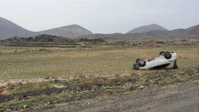 وأوضح الشهود في تصريح الى " المشهد اليمني " أن الحادث وقع بالقرب من أحد الحواجز الامنية التي تقيمها مليشيا الحوثي، على الخط العام الرابط بين محافظتي صنعاء وعمران، بالقرب من كولة ذيفان، و أدى إلى انقلاب السيارة (كما في الصورة) فيما نجا السائق بأعجوبة.
