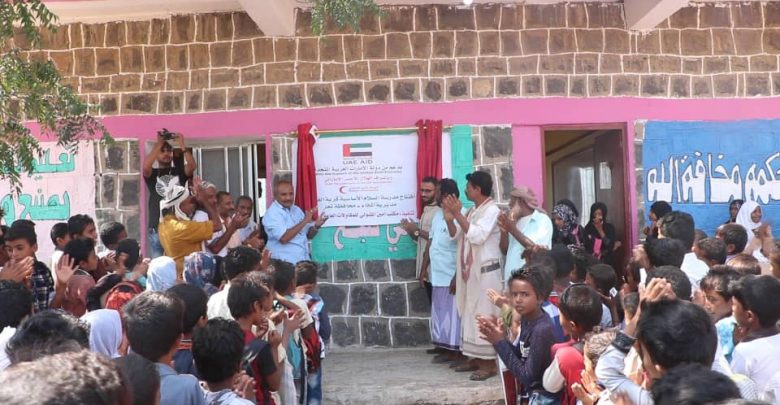 افتتحت دولة الإمارات العربية المتحدة عبر ذراعها الإنسانية ،هيئة الهلال الأحمر، يوم أمس الثلاثاء ، مدرسة “السلام ” وتعد ثاني مدرسة جديدة يتم افتتاحها في مديرية المخا بمحافظة تعز مع بداية العام الجديد 2020 م ضمن المدارس والمنشآت التعليمية المؤهَّلة البالغ عددها 14 منشأة في مديرية المخا ياتي هذا في إطار سلسلة متواصلة لدعم قطاع التعليم في الساحل الغربي.