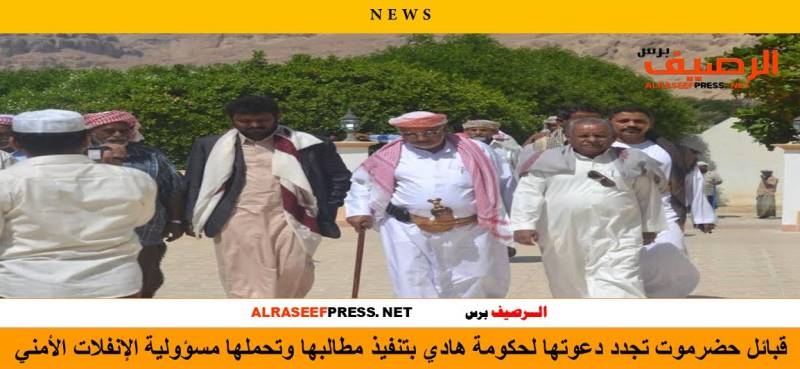حذرت قبائل حضرموت الوادي و الصحراء من خروج الوضع عن السيطرة في حالة التلكؤ في تنفيذ مطالبها بوضع حد للانفلات الامني , وتسليم ملف الأمن لأبناء حضرموت.