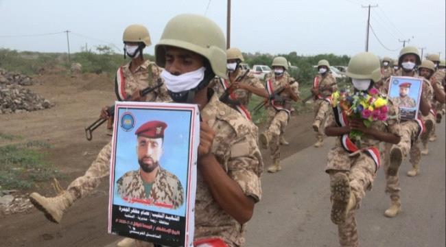 حيث سار الموكب في وسط المدينة تكريما للشهيد الذي يعد احد فرسان الجمهورية الأبطال بعد حياة حافلة بالنضال الوطني ضد فلول ميليشيات الحوثي الكهنوتية العنصرية ودفاعاً عن النظام الجمهوري وحرية وكرامة الشعب اليمني، حيث كان الشهيد احد الابطال الغيورين على وطنه وامنه واستقراره وتصدى للخونة والمتآمرين بشجاعة وتعرض لإصابة بالغة في فوضى 2011م ..