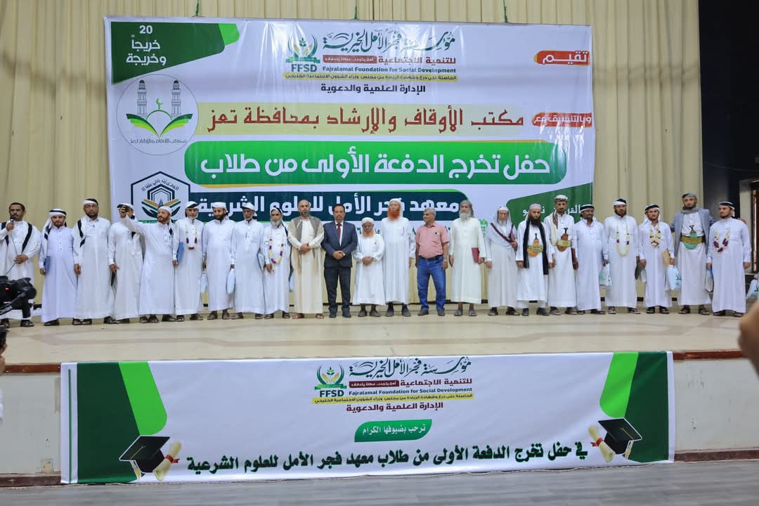 الاثنين | 26 مايو 2025ماحتفت مؤسسة فجر الأمل الخيرية للتنمية الاجتماعية، اليوم الاثنين، بتخرج الدفعة الأولى من معهد فجر الأمل للعلوم الشرعية، والتي تضم 20 خريجًا وخريجة، في حفل رسمي شهد حضور عدد من العلماء والدعاة